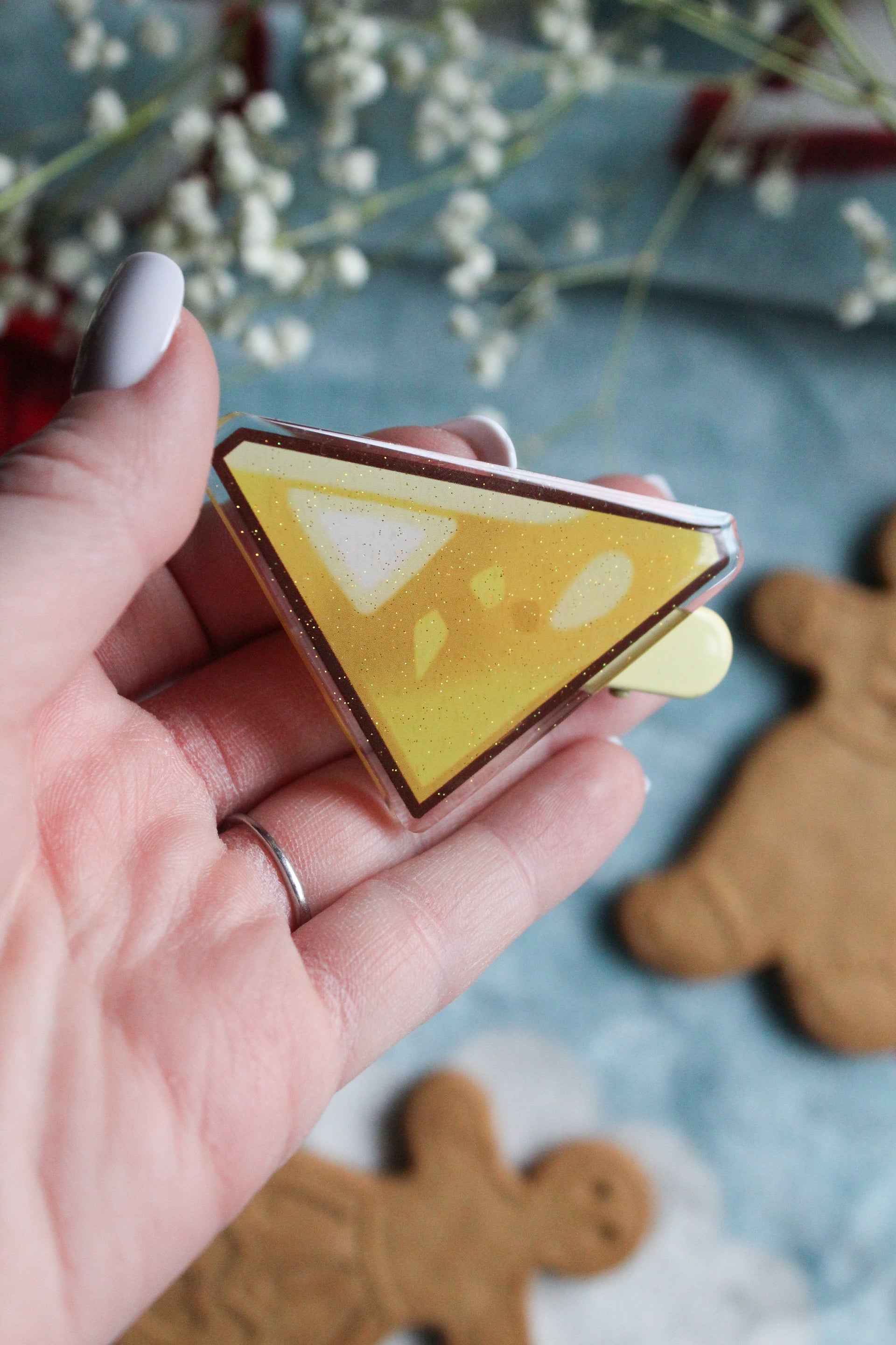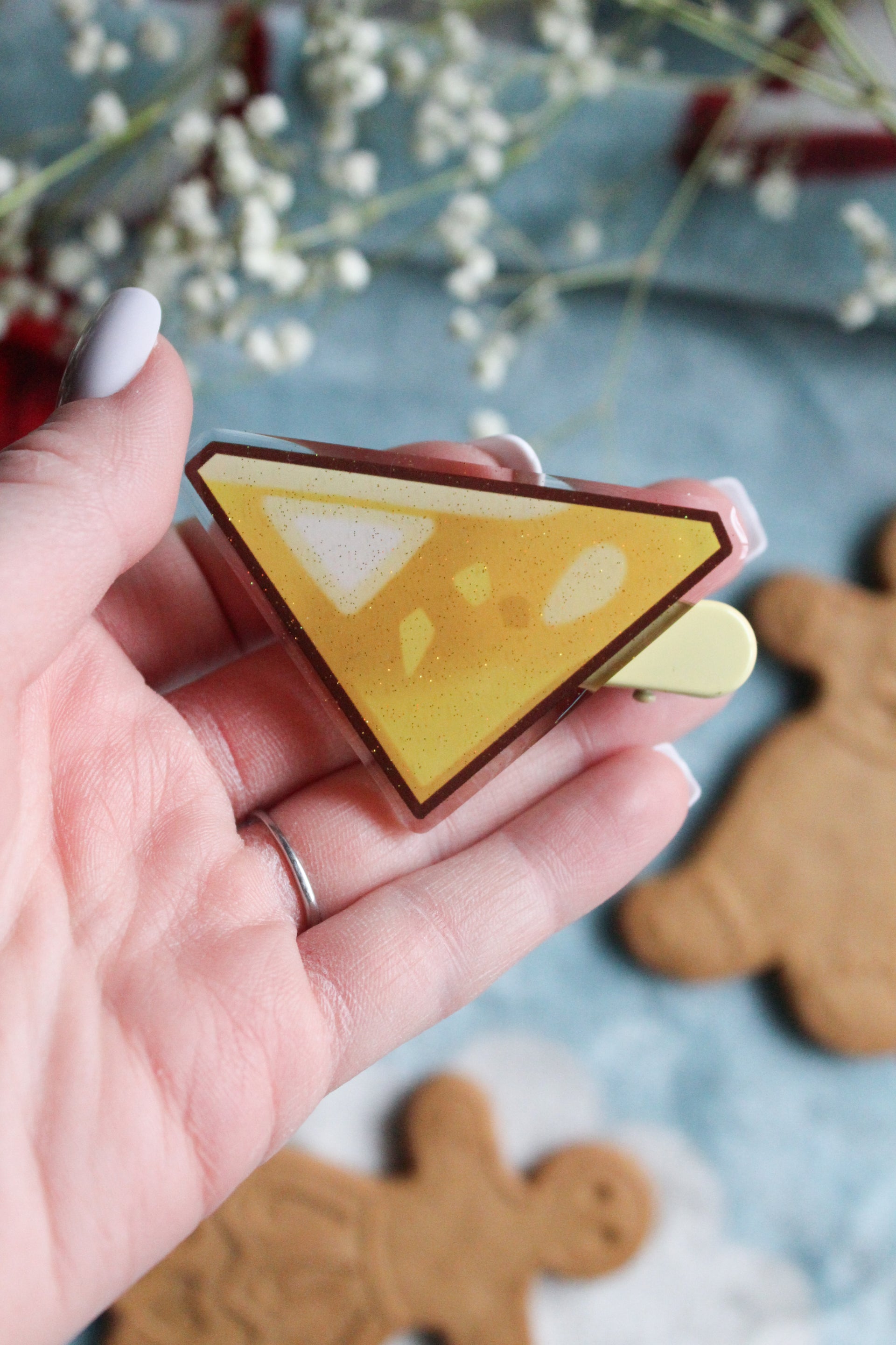 Cookie Run Golden Cheese Soul Jam Acrylic Hair Clips | Glitter Epoxy Front | 2.5" x 2"
