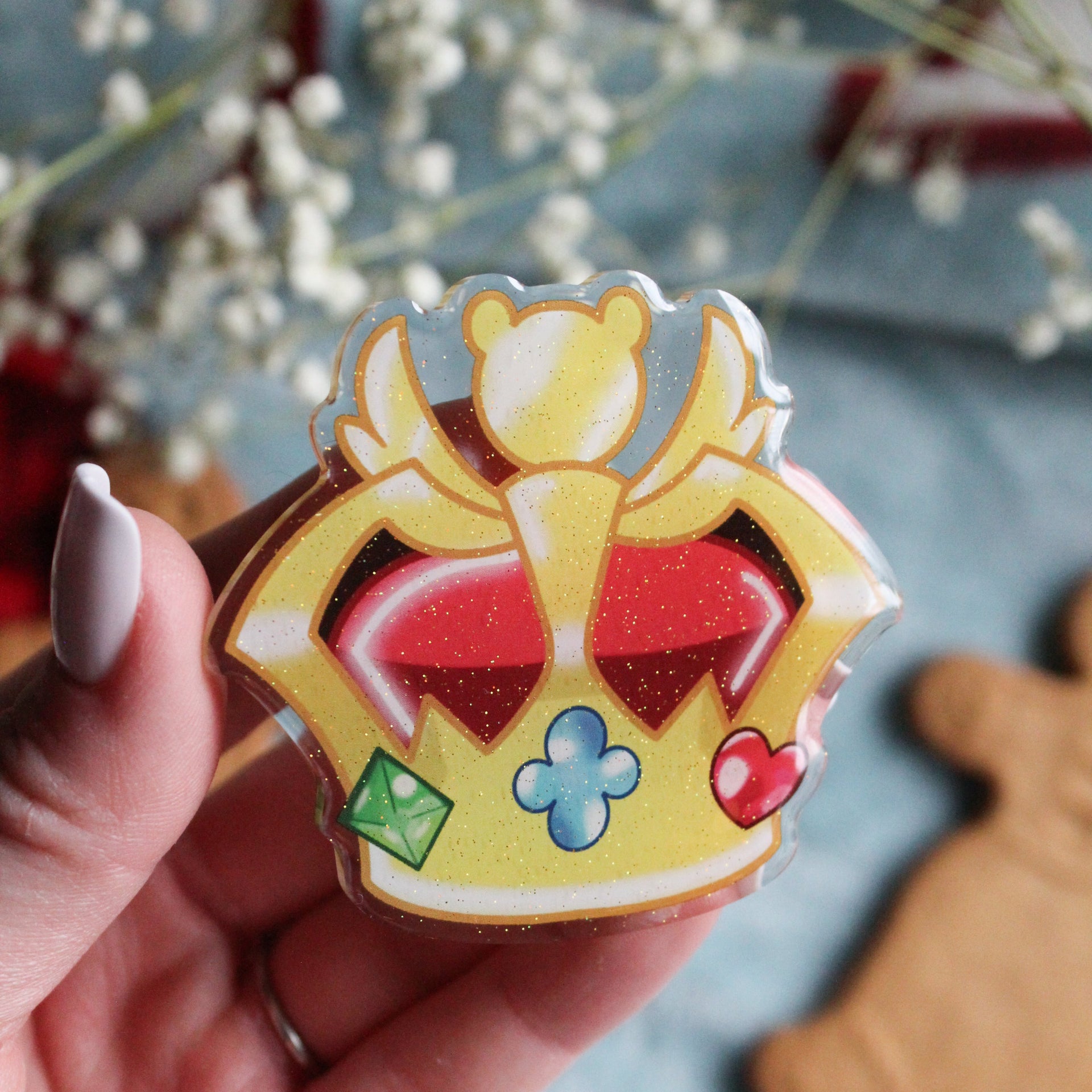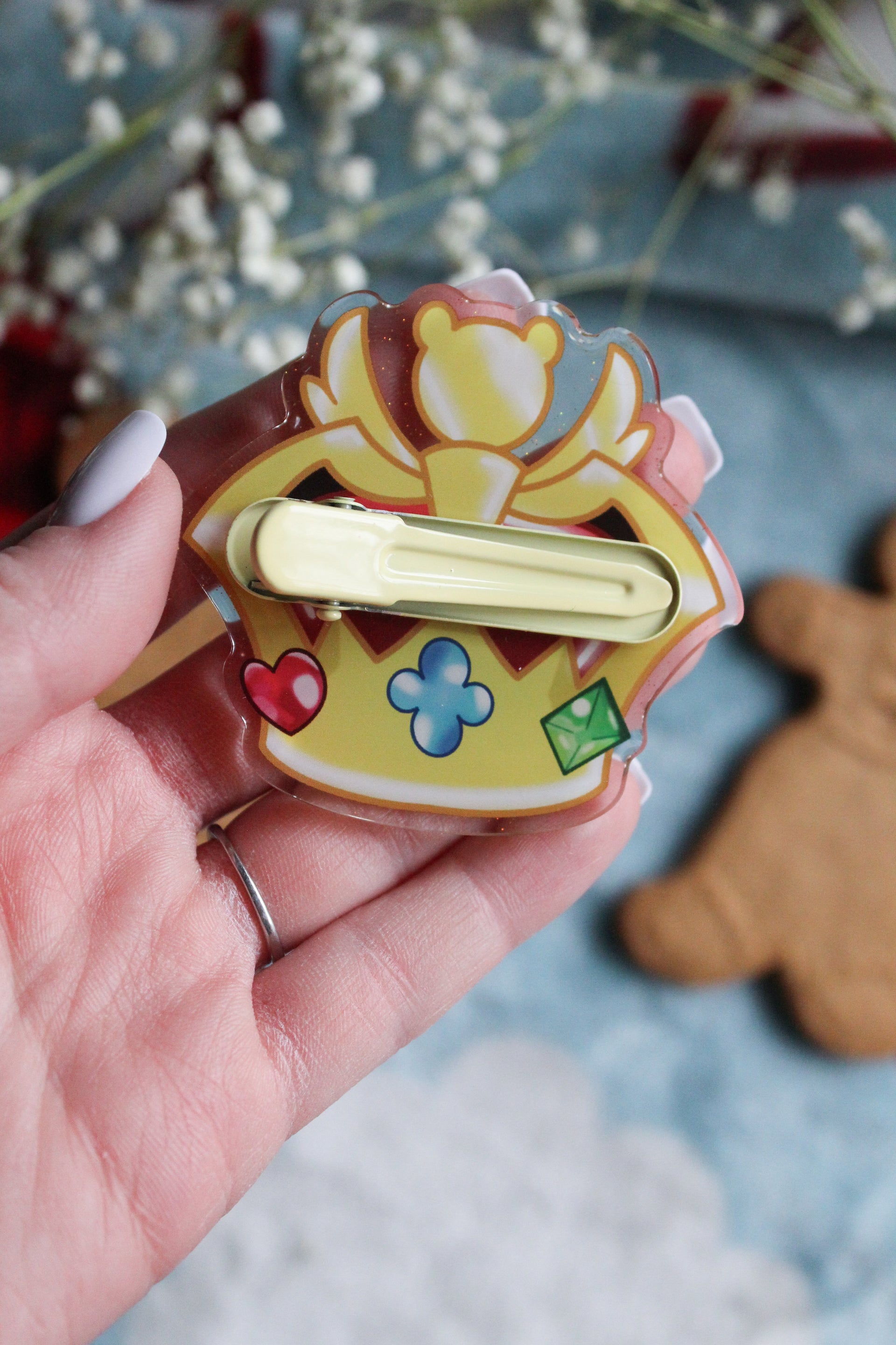 Cookie Run Kingdom Crown Acrylic Hair Clips | Glitter Epoxy Front | 2.5" x 2.5"