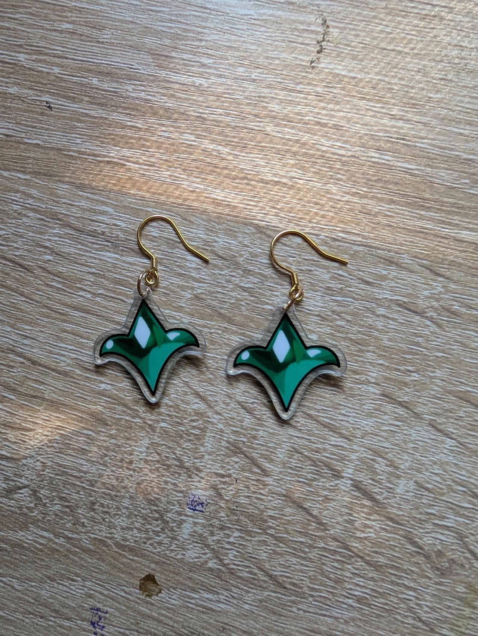 - Mounted on gold-plated nickel ear hooks with included soft silicone backs