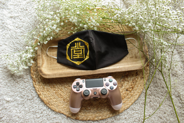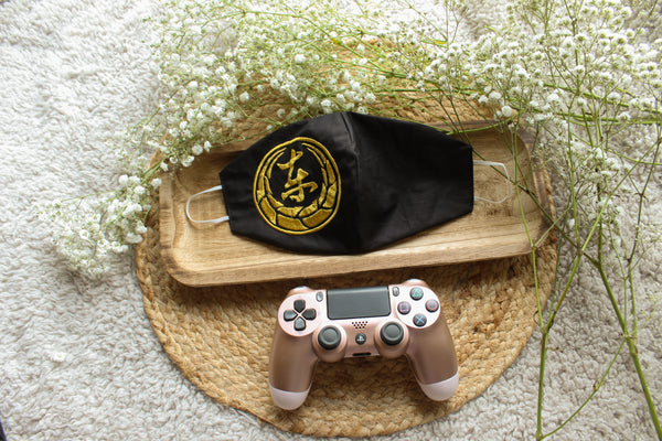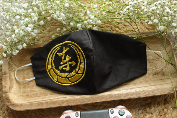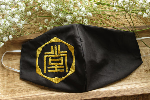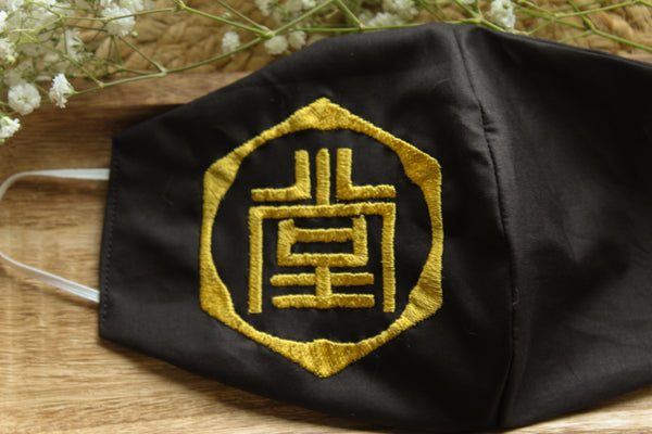 - Black fabric with gold embroidery