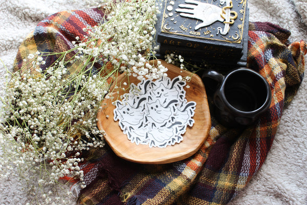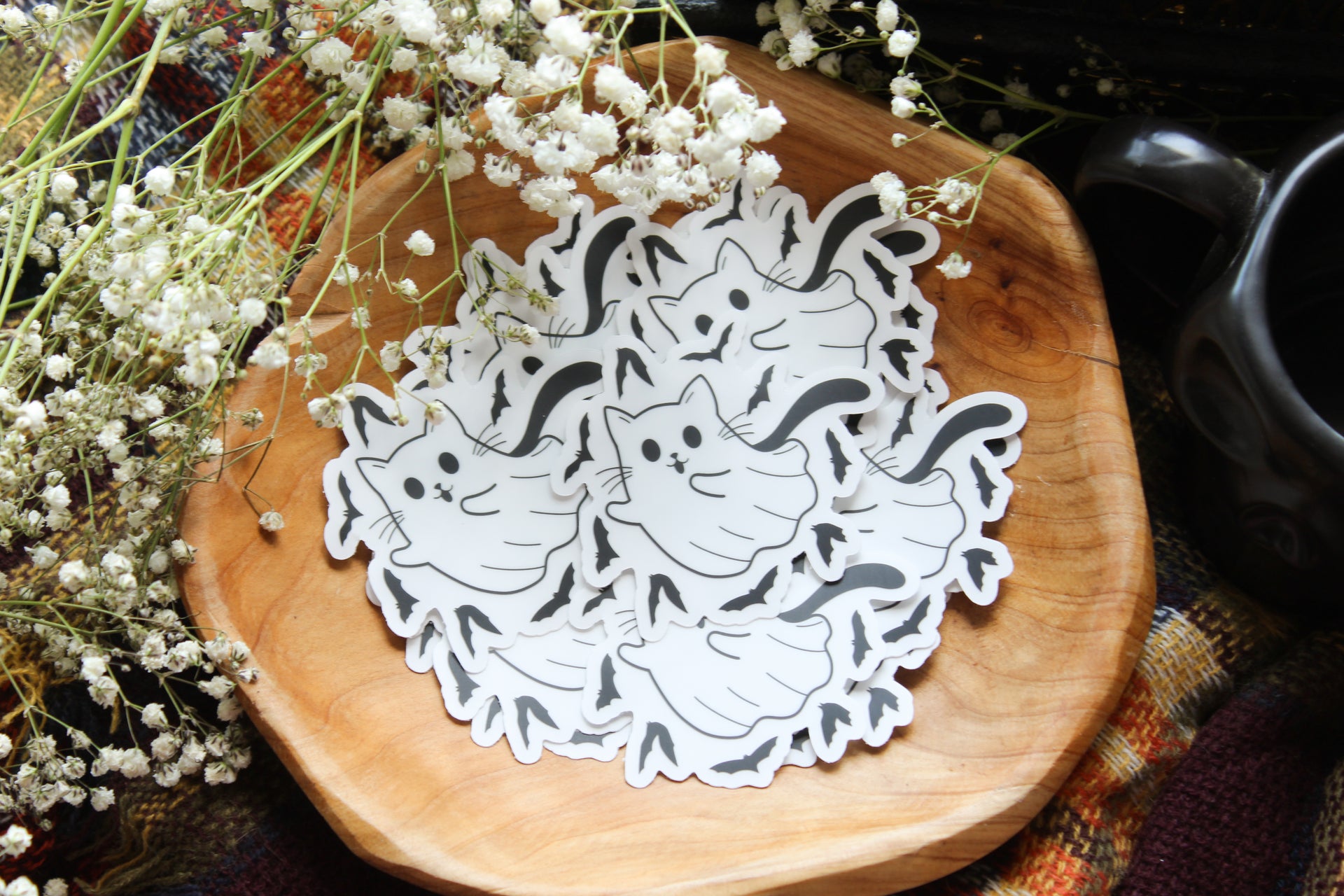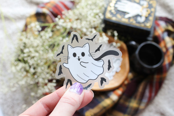 Ghost Cat Bats 3" Clear Vinyl Stickers
