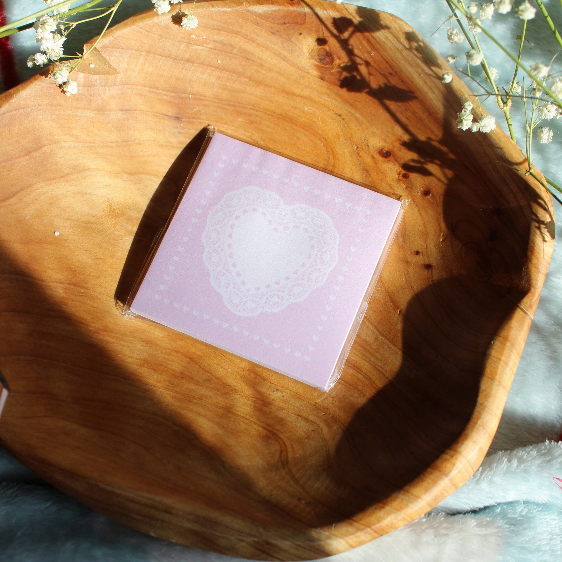 - Full color hand drawn artwork featuring a heart-shaped lace center and small heart border