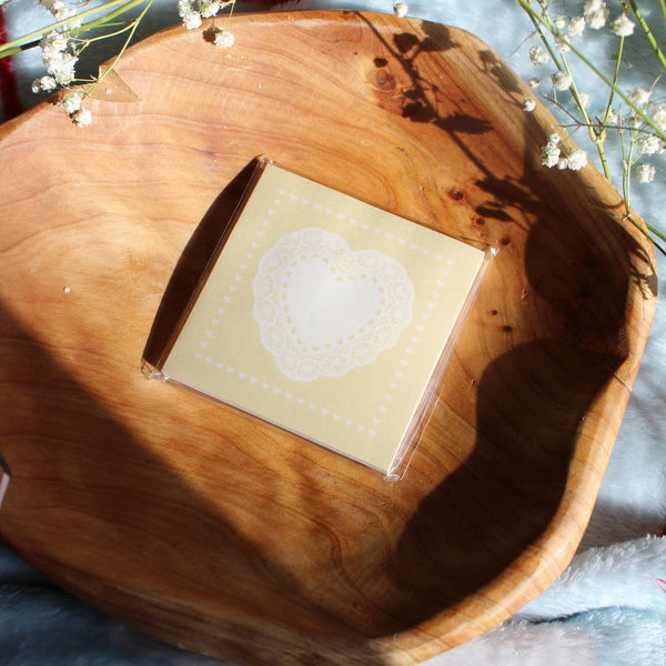 Pastel Yellow Heart Lace 3x3 Sticky Notes | 50 Self-Adhesive Pages | Aesthetic Sticky Notes