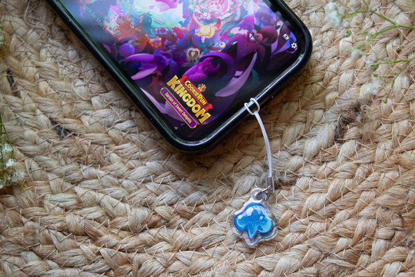 Cookie Run Kingdom Pure Vanilla Soul Jam Acrylic Phone Charm | Glitter Epoxy Front | Double-sided | White Strap | 1" x 1"