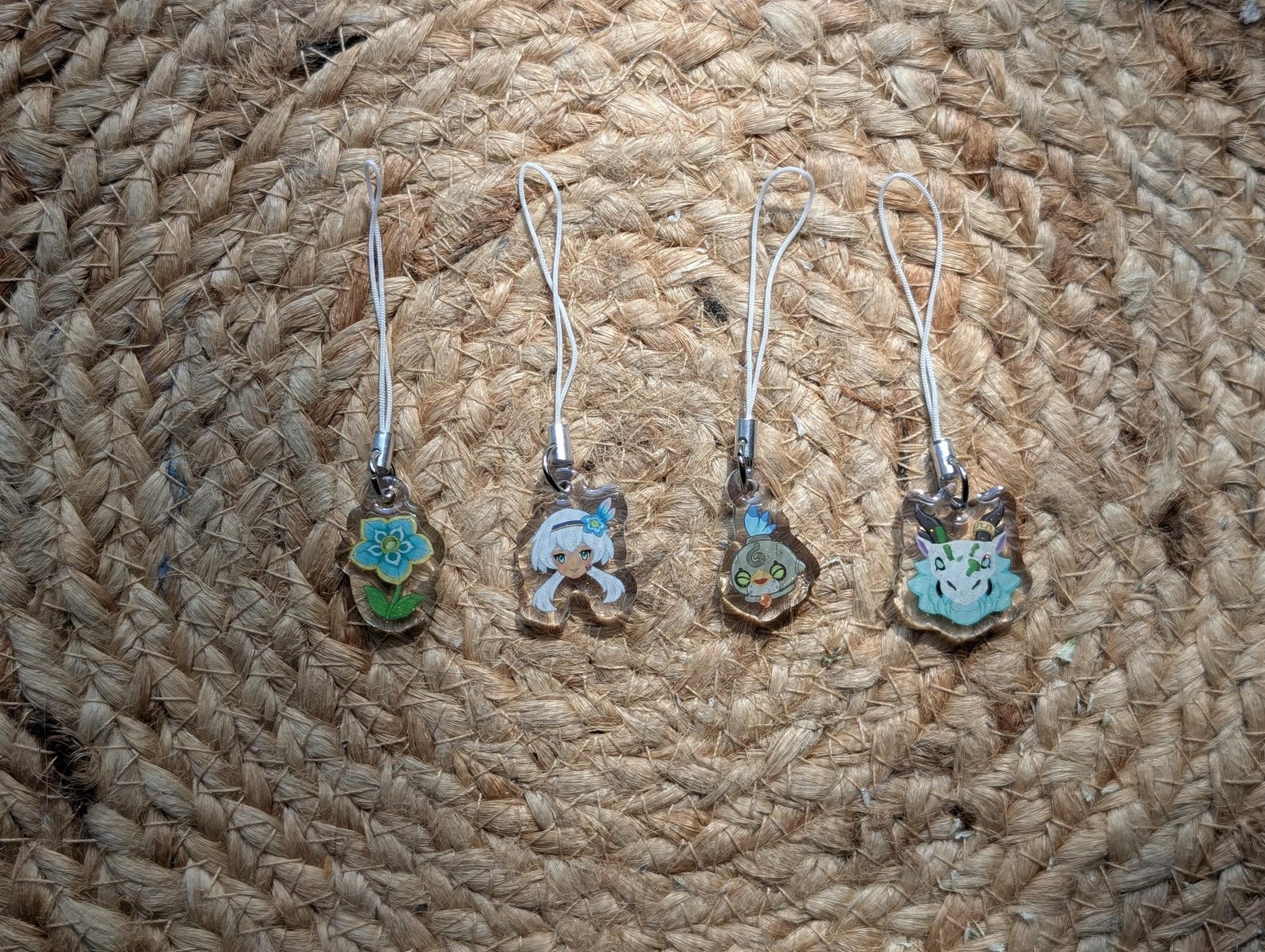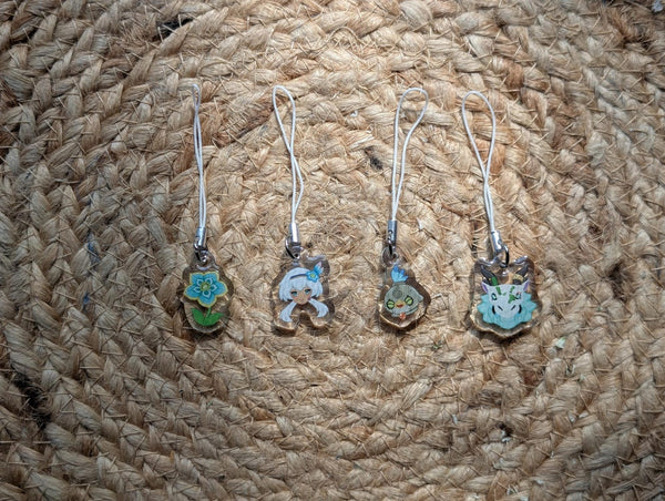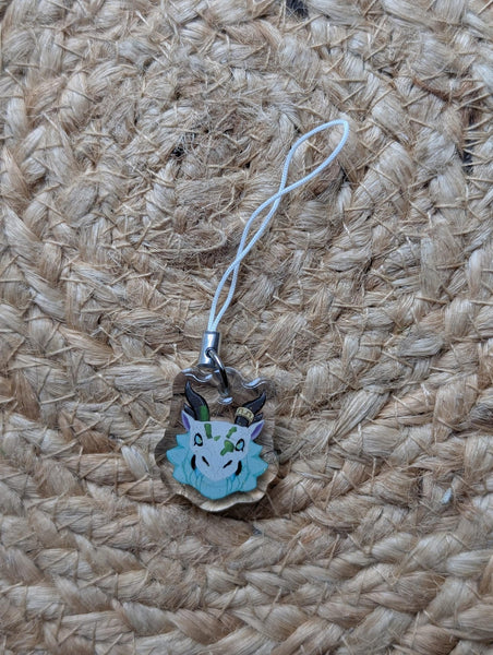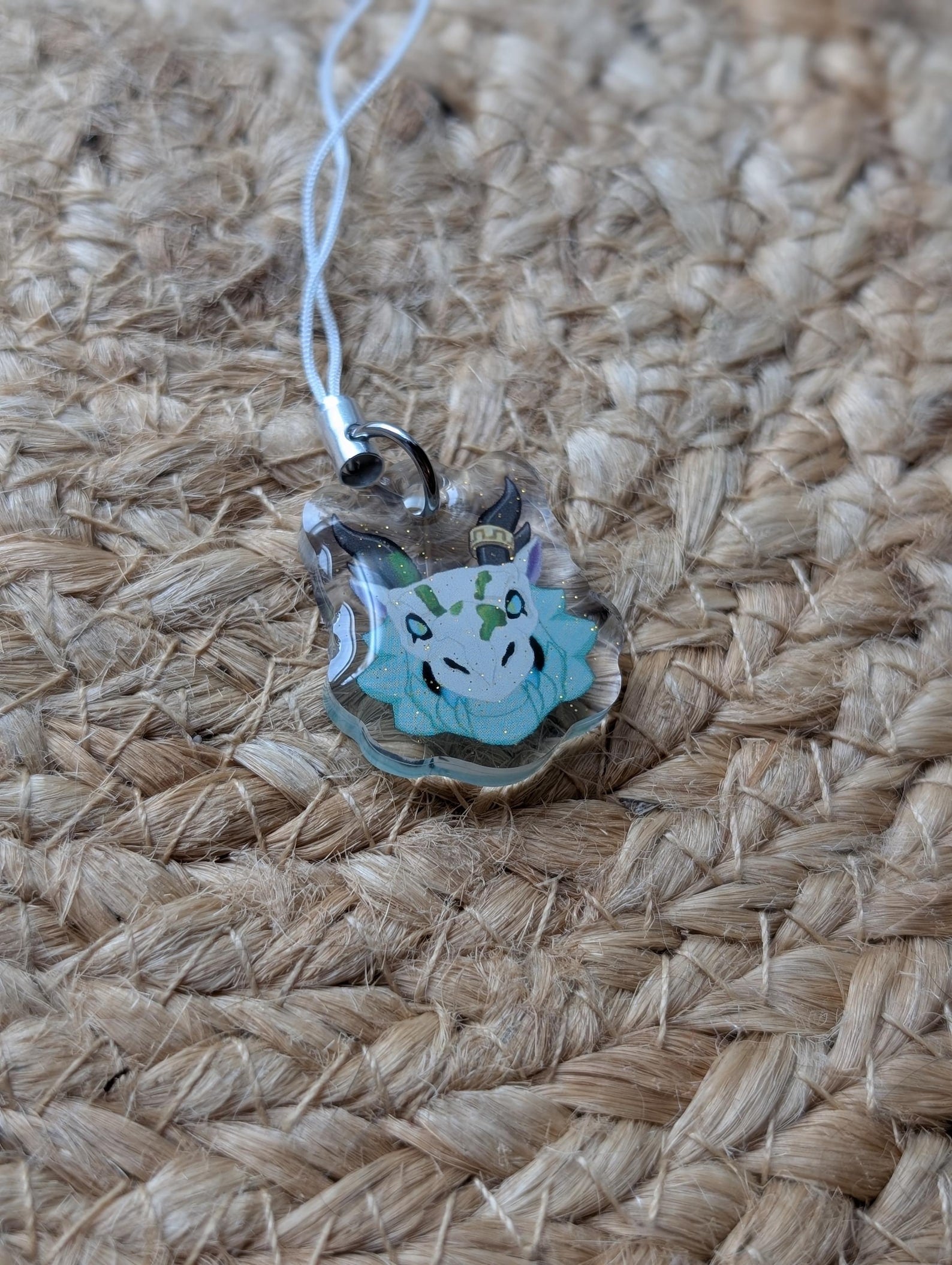 Fantasy Life i Skelegon Acrylic Phone Charm | Glitter Epoxy Front | Double-sided | White Strap | 1" x 1" | The Girl Who Steals Time