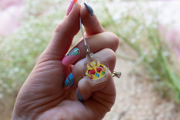 - Please make sure you peel off the protective film on each side of your charm! The film is for protection during packaging and transit, but it scratches easily and mutes some of the gloss of the acrylic. If you notice your charm has a deep scratch on it when it arrives, that’s just a scratch in the film and the film can be removed!