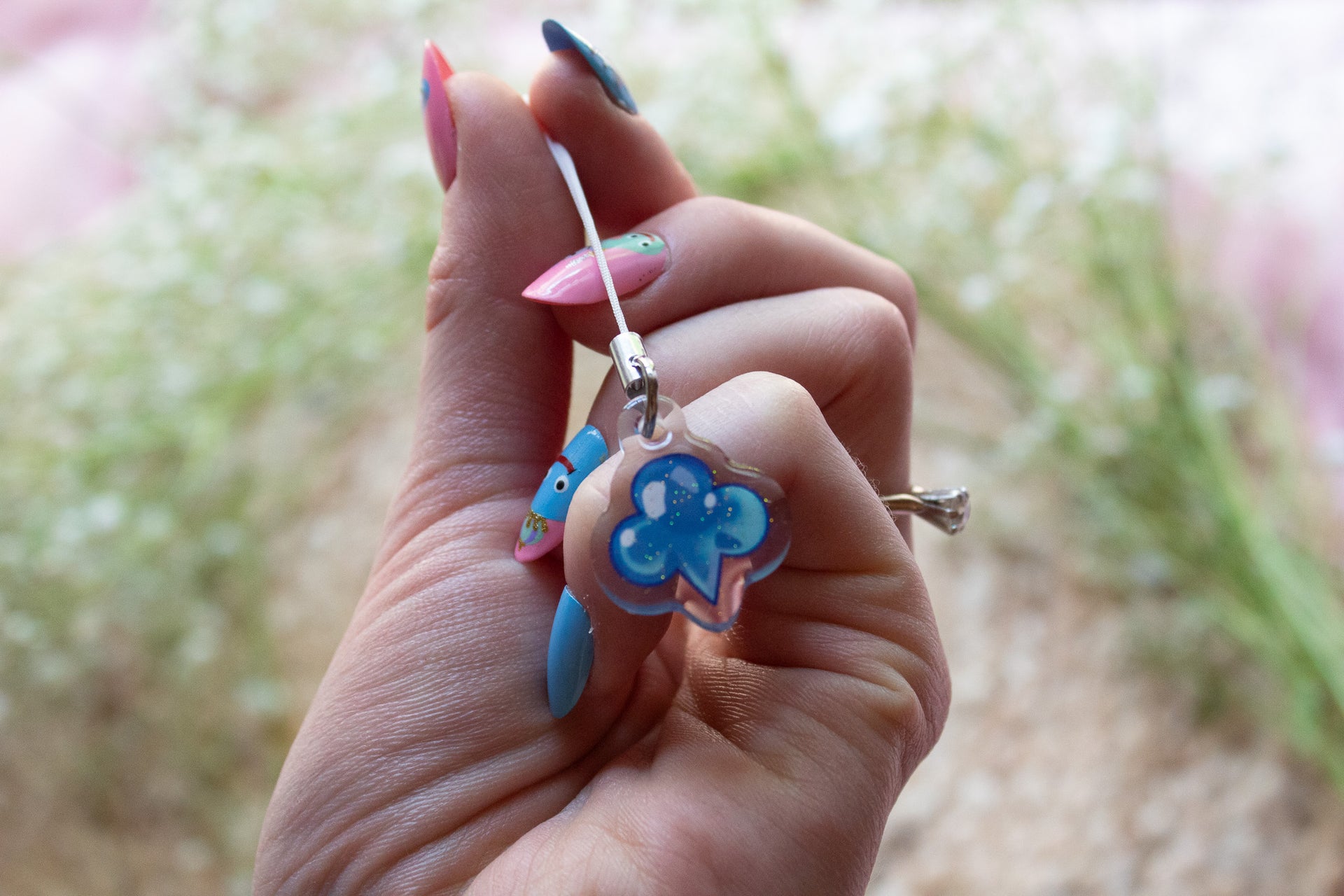 - Please make sure you peel off the protective film on each side of your charm! The film is for protection during packaging and transit, but it scratches easily and mutes some of the gloss of the acrylic. If you notice your charm has a deep scratch on it when it arrives, that’s just a scratch in the film and the film can be removed!