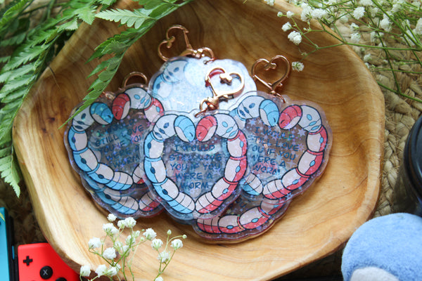 - Please make sure you peel off the protective film on each side of your charm! The film is for protection during packaging and transit, but it scratches easily and mutes some of the gloss of the acrylic. If you notice your charm has a deep scratch on it when it arrives, that’s just a scratch in the film and the film can be removed!