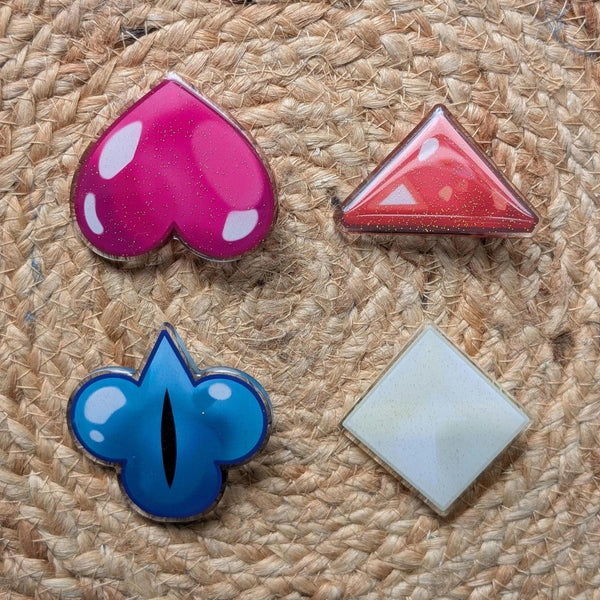- Printed clear acrylic with glitter epoxy front