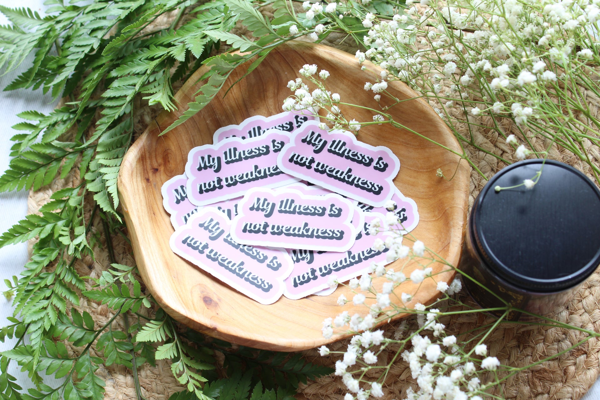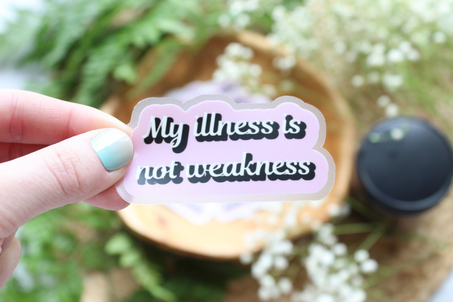 - Coated printed vinyl sticker (pink variant)
