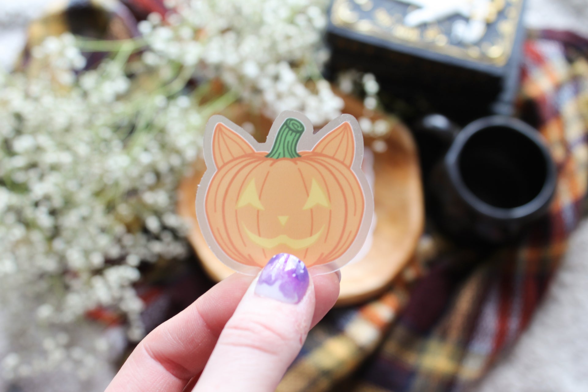 Jack-O-Lantern Cat 2" Clear Vinyl Stickers