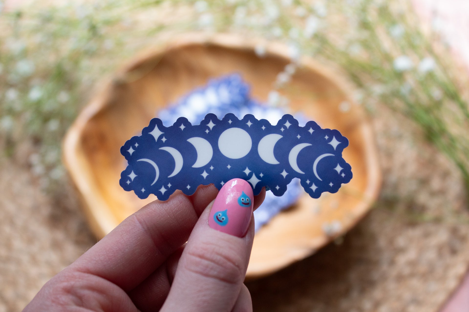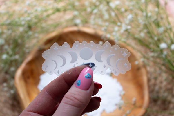 Sparkle Moon Phases 3" Waterproof Vinyl Sticker | Matte Finish | Clear and Solid | Space Sticker | Lunar | Stars Sticker | 1.5" x 3"