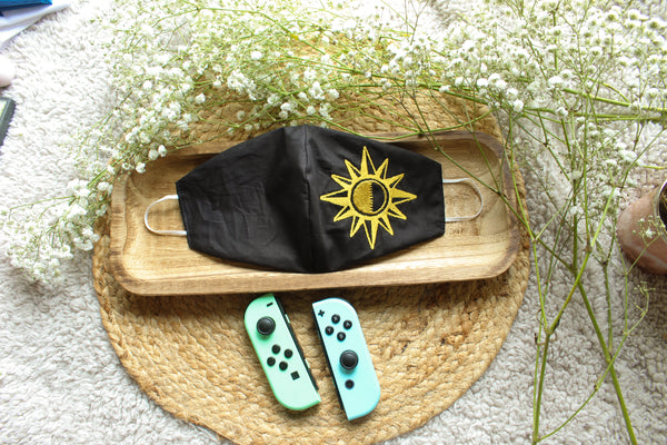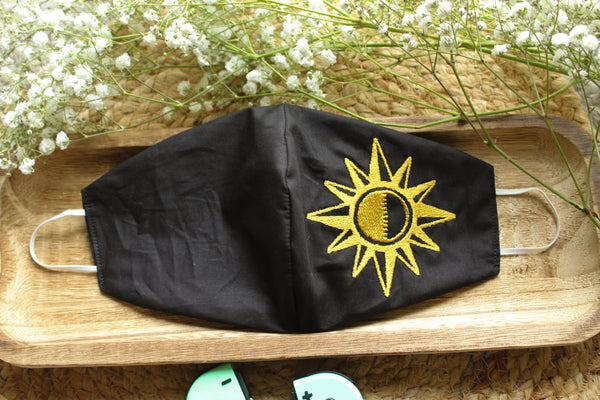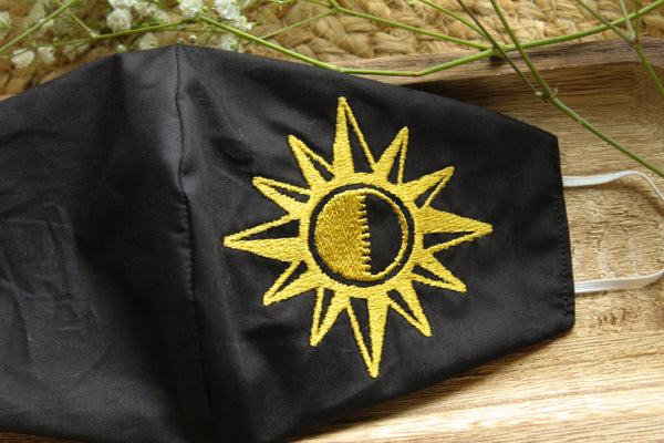 Golden Sun Cotton Face Mask | Embroidered | 5" x 8"